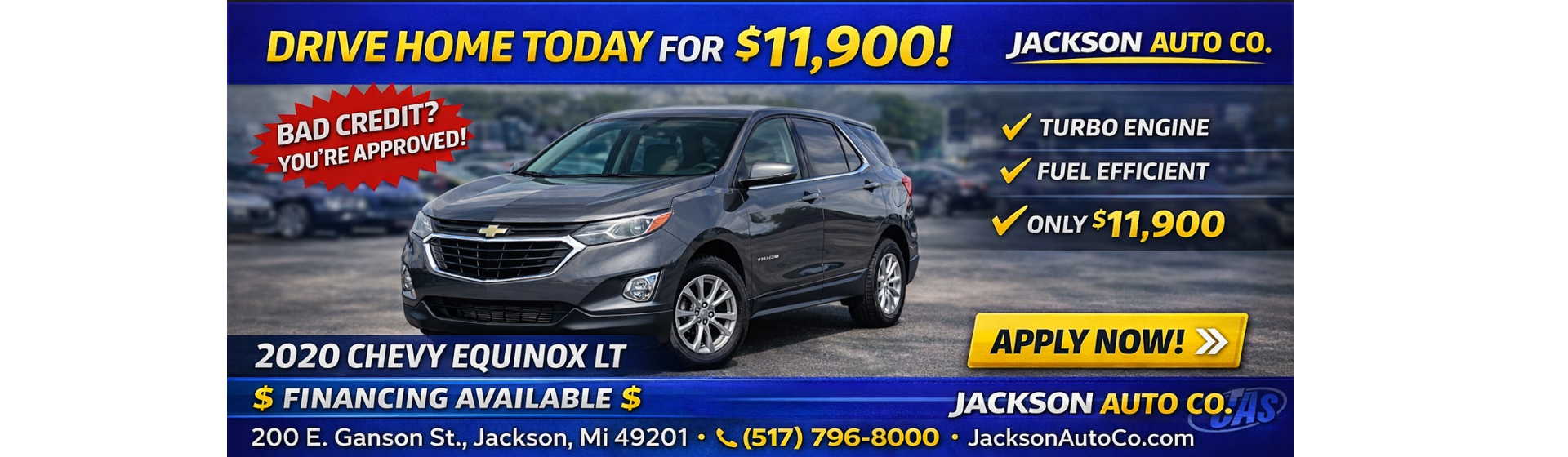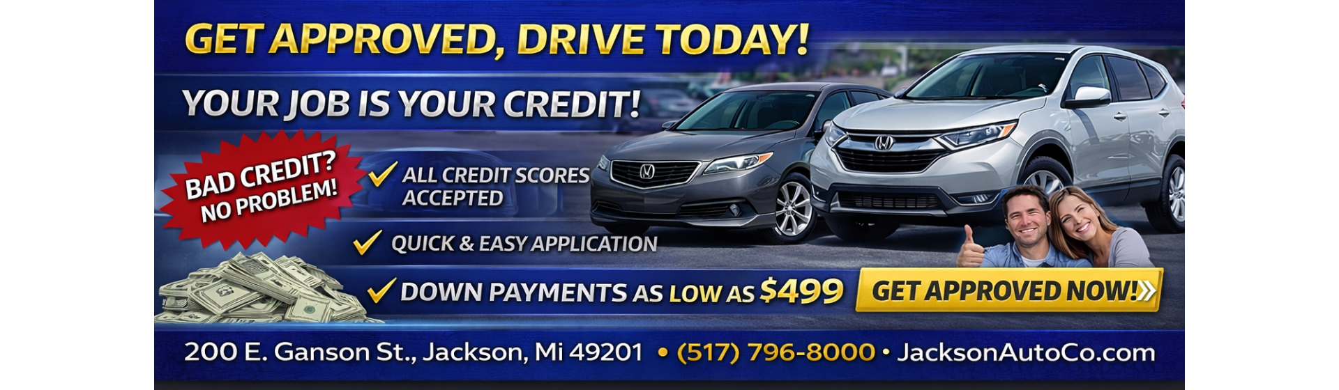 By checking this box, you expressly consent to receive customer care text messages and/or phone calls to the number provided from or on behalf of Jackson Auto Co or their employees in response to your inquiry. By opting in, you understand no mobile information will be shared with third parties or affiliates for marketing or promotional purposes. Message frequency varies per user. Message and data rates may apply. You may withdraw your consent at any time by texting "STOP" or "HELP" for help. See our