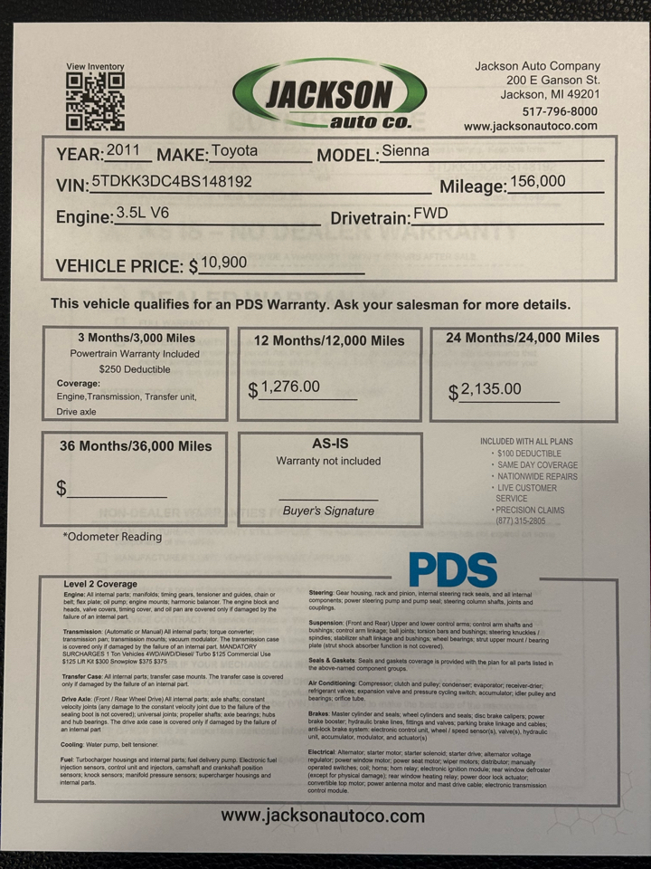 FREE VEHICLE DELIVERY WITH-IN 300 MILES!!!! CALL/EMAIL FOR DETAILS... Welcome to Jackson Auto Company! We offer late model vehicles at competitive prices, we hand pick all of our vehicles and stand behind everything we sell. At Jackson Auto Co., we offer free carfax, extended warranties and gap insurance. Jackson Auto Co. has financing for all sorts of credit including bankruptcy, divorce and first time buyers. For customers with excellent credit, we have multiple sources to find you the lowest interest rate and best term available. Here at Jackson Auto Company, we not only want to sell you a great car, but we want your family members, co-workers and friends to buy from us also, we pride ourselves in excellent customer service! Stop by, give us a shot, if you don't see what your looking for, let us know, we will find that perfect car for you and your family. Experience the Difference at Jackson Auto Co.! Visit Jackson Auto Co online at www.jacksonautoco.com to see more pictures of this vehicle or call us at 517-796-8000 today to schedule your test drive.